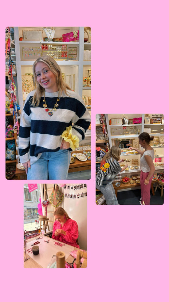 Een deel van de sieraadjes is handgemaakt en bedacht door mijzelf! een ander deel zoeken we met heel veel liefde uit. hierdoor heb je altijd een uniek pareltje!